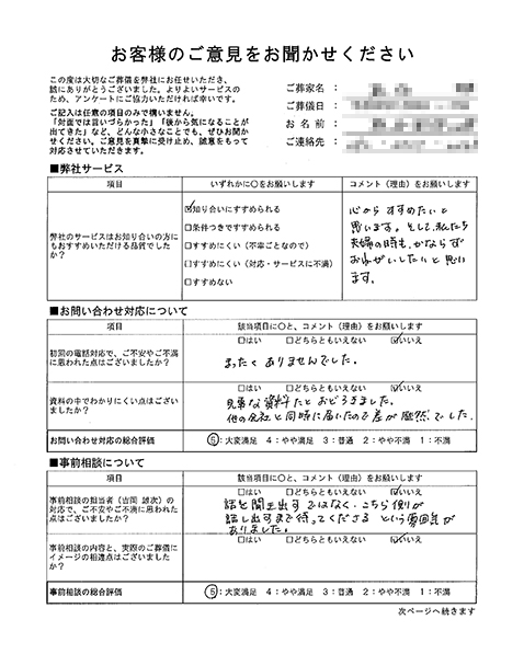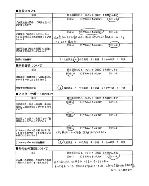 故人様への対応に、ご不安やご不満に思われた点はございましたか?