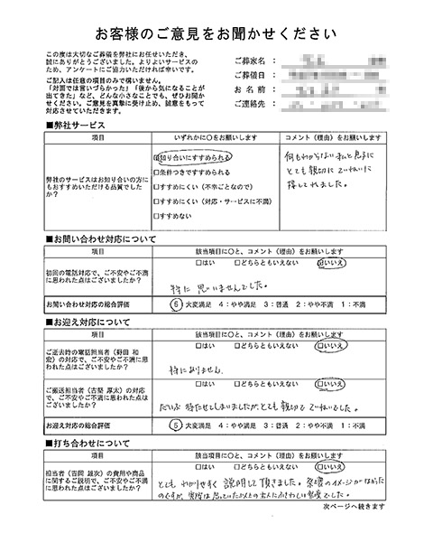 実際にお葬式のむすびすで葬儀を行ったお客さまから寄せられた声をご紹介いたします。