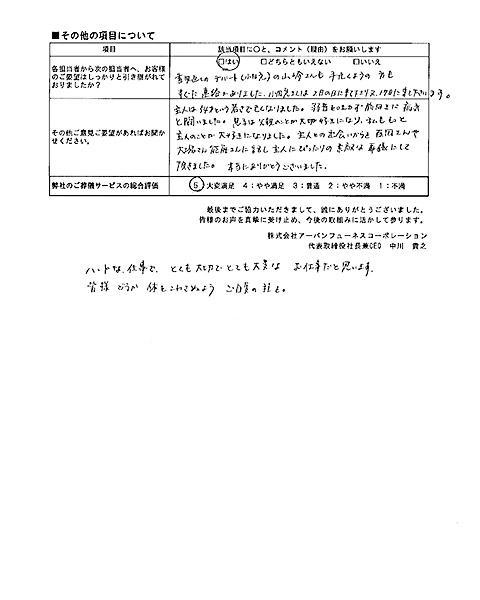 東京都立川市 N様からいただいたコメント