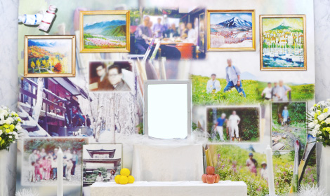 奥様にご葬儀の感想をお伺いすると、「打ち合わせのときから大変丁寧にご説明していただき感謝しています」「懐かしい写真も入れ参列者の方々と想い出話をすることもできました。作品を飾ることもできて主人も喜んでいると思います」というお言葉を頂戴しました。 ご会葬者様のお一人もメモリアルスクリーンにとても感動されたご様子で、去年亡くなられたその方のご主人も写っておられるとのこと。 「このような祭壇ははじめて。涙が出るくらい感動しました」とのお言葉をいただきました。