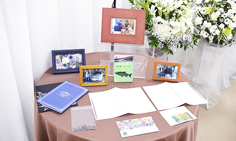 ご葬儀の感想をお伺いすると、祭壇背景のメモリアルスクリーンが新鮮で、生花とのバランスもとれていたこと。 参列いただいた皆様にも気に入ってもらえたと思うとのお言葉を頂戴いたしました。 さらに、メッセージ入りの寄せ書きや、闘病中は食べることができなかった好物をたくさんお手向けできたこと。梨の花言葉が「和やかな愛情」「情愛」であることを盛り込んだ式当日のアナウンスが素晴らしく、梨の花言葉を初めて知って、まさに花言葉に相応しい故人様のことを、より深く想うことができたとおっしゃっていただけました。
