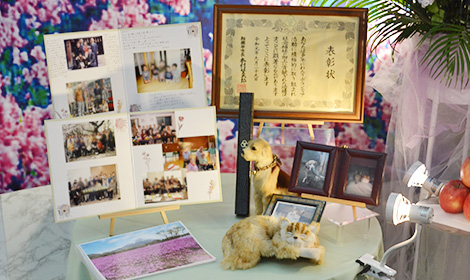 ご家族様から展望花畑のメモリアルスクリーンのご提案に感謝のお言葉をいただきました。 開式までは皆様、情景パネルにメッセージを書いたり、思い出コーナーや故人様の側にずっと付き添って過ごされました。 お別れ時間、お柩の中でお孫様やペットたちのお写真、大好きなお花に囲まれた故人様をご覧になられたご家族の皆様は安心してお見送りなさいました。