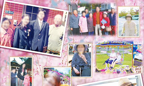 この度のお式でメモリアルスクリーンによる祭壇をご提案されたのはご長女様でした。 弊社のホームページをご覧になられたご長女様が、『ご葬儀エピソード』掲載のメモリアルスクリーンの事例をもとに、お写真で祭壇を作りたいというご要望を伺いました。 結婚生活57年でダイヤモンド婚式も直前だったご夫婦の足跡、お二人がご趣味にしていたウォーキング、そしてご家族の皆様がこれから歩んでいかれる未来を予感させるような、笑顔満開のデザインとさせていただきました。
