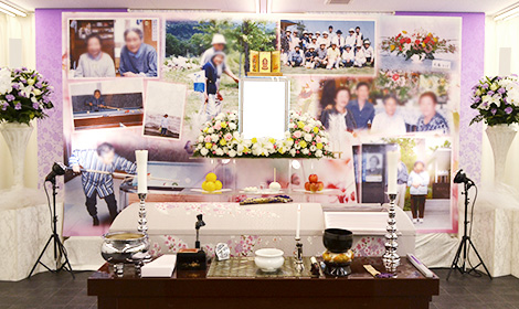 2年前ご長男様がご逝去されたときの家族葬にご納得がいかず、今回むすびすにご依頼いただいたご喪家様。 ご葬儀の経験とイメージをしっかりとお持ちになり、お打合せはスムーズに進みました。 そのお話をもとに、お預かりしたお写真から制作したメモリアルスクリーンをご覧になられて、喪主のご次男様もご長女様も大変喜んでいただけました。
