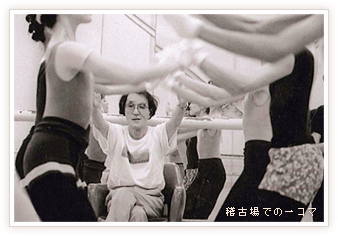 晩年は、若い方々を熱心に指導されました。稽古場のバー(ダンサーがつかまりながらバレエの基本の動きを練習する棒)の下に腰掛けて、身振り手振りで教えるお姿が皆様の心に強く残っています。踊りには決して妥協を許さない、しかし愛情と人情にあふれた石田先生の指導を受け、数多くのダンサーが道を切り拓いていきました。