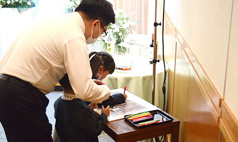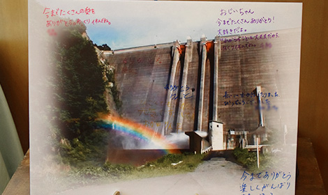 式当日は式場に入ると、「お花綺麗~!写真もいいですね」と仰って下さり、とても喜ばれていました。 ご長男様も携帯で写真を撮られて多くは語らずとも満足されているご様子でした。 蔵王ダムのメッセージパネルについても、「用意してくださったんですね!ありがとうございます~」と仰って下さり、故人様が蔵王ダムの建設に携わっていたことを改めて凄いですね、誇りですねと意図を含めてお伝えしたところ、ご長女様が涙ぐまれ、ご長男様は「中空重力式ダムだからね。日本で一番ダムの建設に携わった人だしさ」と得意気に話されていました。 会場の空間を通じて故人様の功績を振り返れる素敵なお時間になりました。