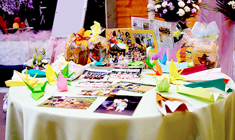 当日は式場のお飾りにご満足いただけたご様子でした。 お別れ前には皆さまで写真撮影。 ご親族のどなたかが後ろのメモリアルスクリーンを見ながら「みんなでお花見しているみたい~」と嬉しそうな表情が印象的でした。 その後、お花入れへ。 メッセージ付きの折紙は、作ったご本人方である故人様のお孫様がたくさんお手向けしてくださいました。 お花入れでは、皆さまとても楽しそうに笑顔いっぱいにお手向けしていました。 全体的に明るく賑やかな雰囲気。 小さなお子様も一生懸命お手向けしてくださり、それを微笑ましく見守りながらも何度もお手に取りお手向けされる方々…あたたかなお時間となりました。