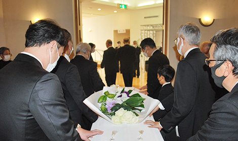 生前、真面目なお人柄は多くの人望を集め、「もっと会って話したかった」と思われた方も多くいらっしゃったはずです。 そういう方々との「再会の場」になるようなご葬儀にしたいと考え、お手伝いさせていただきました。 また、全盲のご長男様がしっかりと故人様を感じることが出来るように、そしてお見送りをすることが出来るように、ご出棺時の音楽や故人様と触れ合っていただく時間など、視覚以外の部分にこだわりを持ってご提案させていただきました。