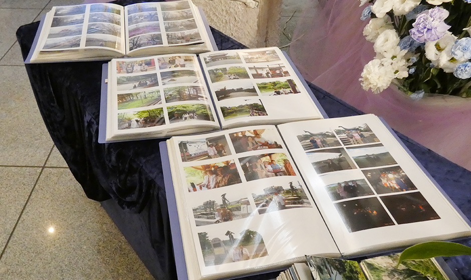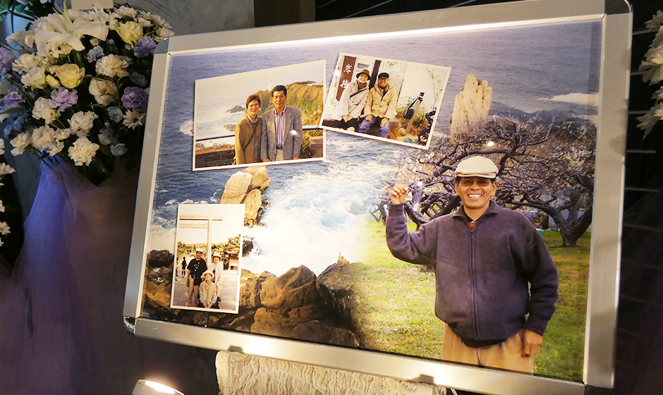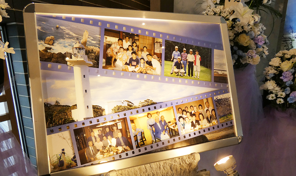 葬儀では、故人様が生涯大切にしてこられた故郷・和歌山を想いながら送り出す時間が設けられました。式場には、故人様ご自身が撮影された和歌山の海の風景を背景として飾り、その周囲には、ご親族や今は亡き奥様との思い出の写真が並べられました。参列された方々が自然と足を止め、写真を前に「この景色が好きだったんだね」「よく帰っていたよね」と言葉を交わす姿が見られました。