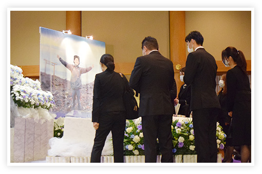 ご家族様にとって命をつなぐ時間となり、結び輝く時間になって欲しいという想いを込めて、ご葬儀のテーマは「ご家族と故人様の人生と命」として、「影なるヒーロー」「最愛の子供たち」「努力家」「仲間」「愛されキャラ」を皆様が共有できる時間と空間をお創りいたします。