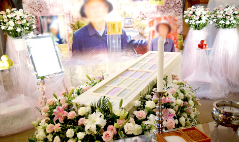 お打ち合わせの席で「今年は母をお花見に連れて行けなかった」と残念そうにお話しされていた喪主のご長男様は、式場空間をご覧になられて大変お喜びになり「任せてよかったです」と仰っていただけました。 ご長女様、ご次女様も「悲しいけれど明るいお別れが出来ました」「ここまでして下さるなんて」とメモリアルスクリーンやパネルの飾り付けをお褒めいただきました。