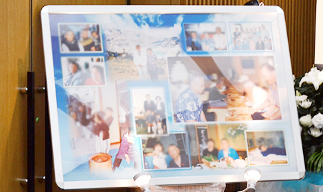 ご葬儀後、奥様にお式の感想をお伺いすると、サプライズでモンブランを用意してもらったことや、立派な生花祭壇を準備してもらったこと、打合せの説明が大変分かりやすかったことなど、むすびすのお手伝いにとても満足していますとのお言葉を頂戴いたしました。 また、「思い出パネル」は自宅用の小さいサイズを貰ったけれど、式場に飾ってあった大きいサイズを貰ってくれば良かったと思うくらい気に入っていると仰っていただきました。