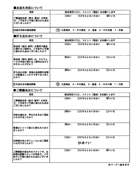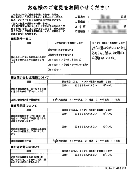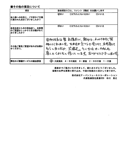 総合評価 志木市にてご葬儀を行った方の評価