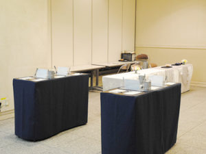 ロビーには受付を作ることができ、参列された方の受付や返礼品お渡しができます。