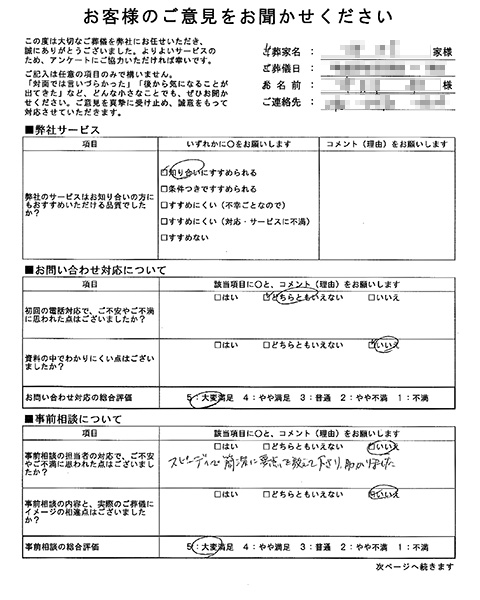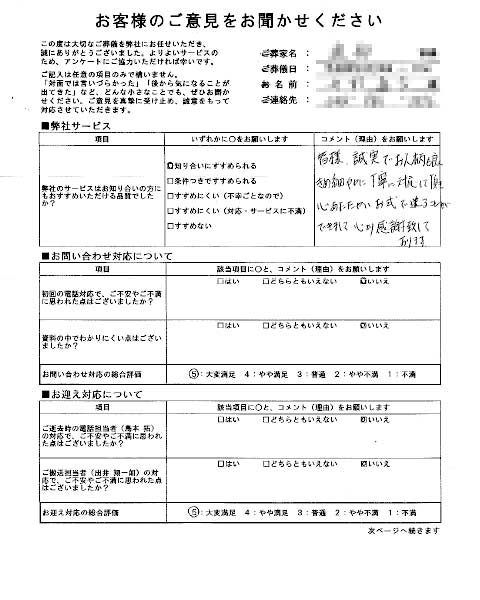 各担当者から次の担当者へ、お客様のご要望はしっかりと引き継がれておりましたか?