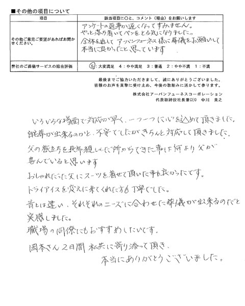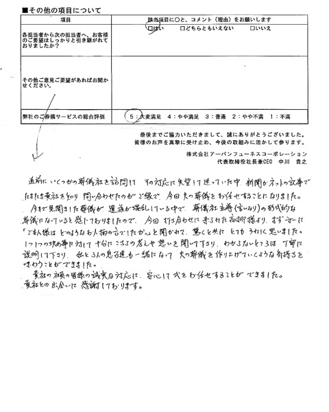 数多くの葬儀に出ますが、今までの中で大変良かったと思います。