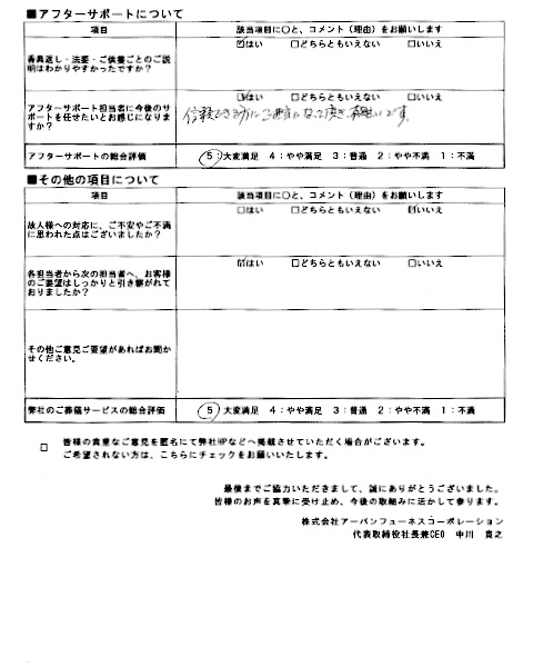アフターサポート担当者に今後のサポートを任せたいとお感じになりますか?