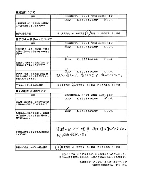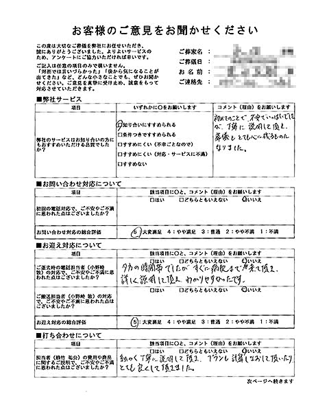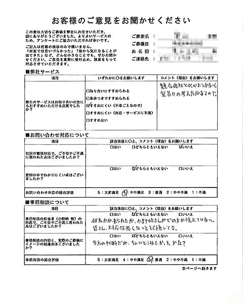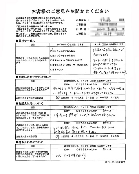 担当者の費用や商品に関するご説明で、ご不安やご不満に思われた点はございましたか?
