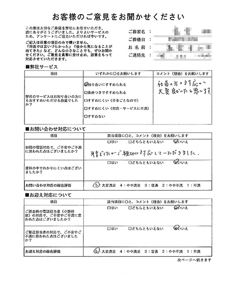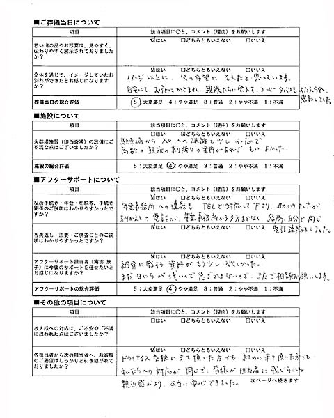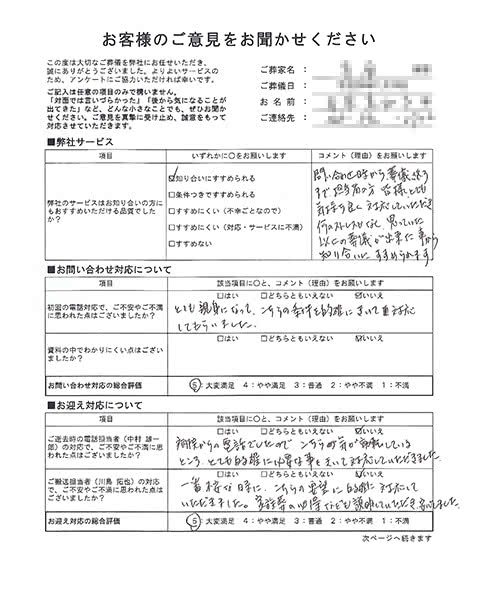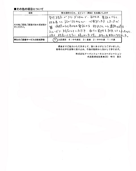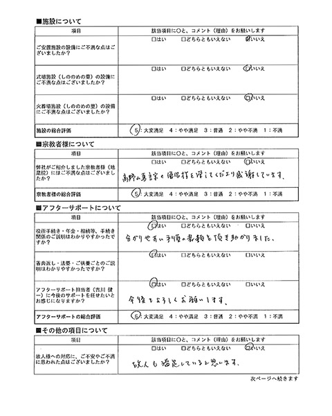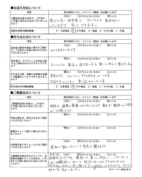 ご搬送担当者(仙田 圭史郎)の対応で、ご不安やご不満に思われた点はございましたか?