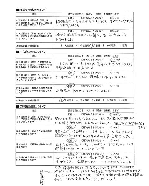 常に気を遣っていただき、スムーズに打ち合わせが出来ました。