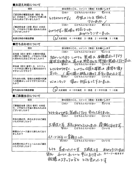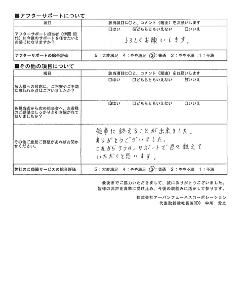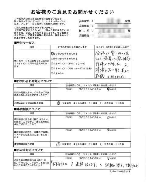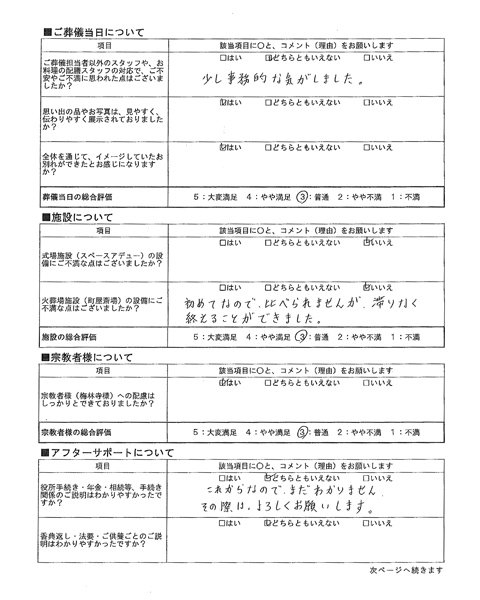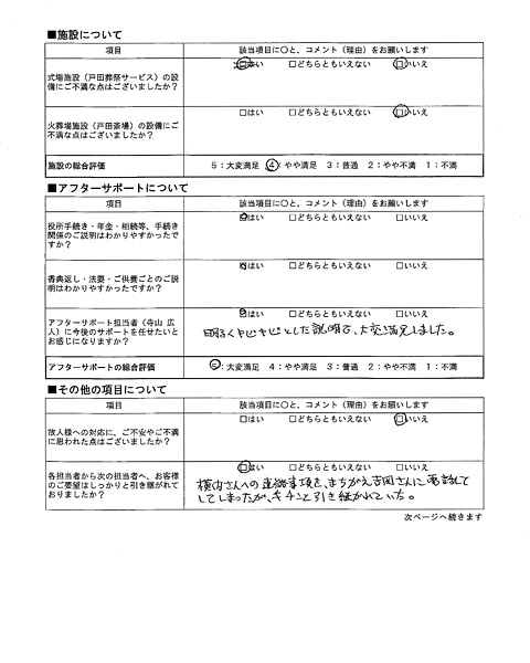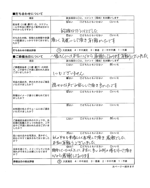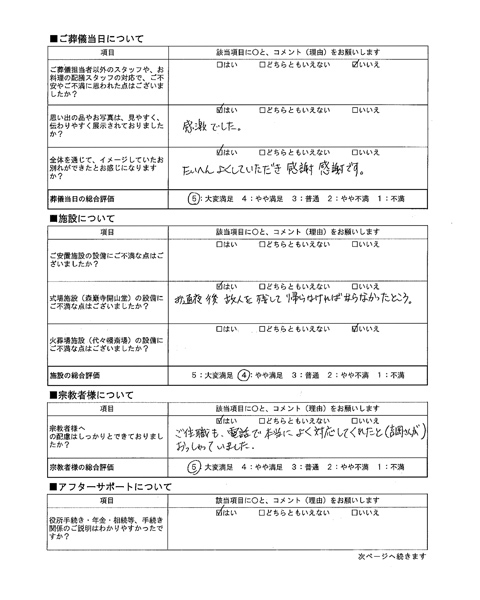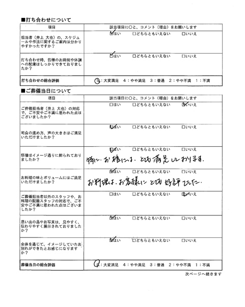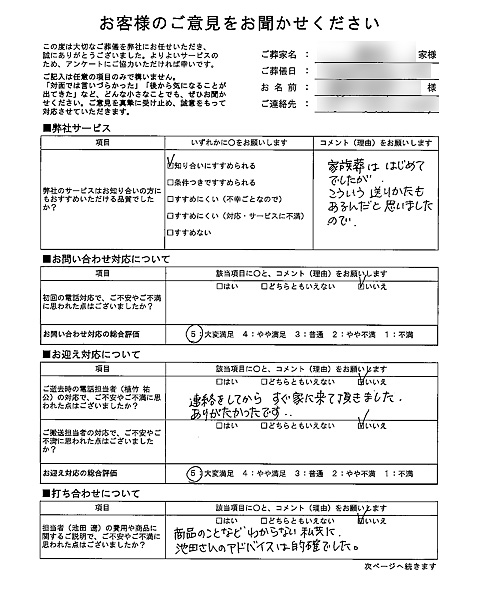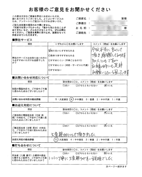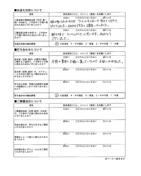 昔ながらの葬儀を望んでる人以外にはすすめられる。今回、友人が貴社で行ったお葬式の話を聞いて決めさせていただきました。