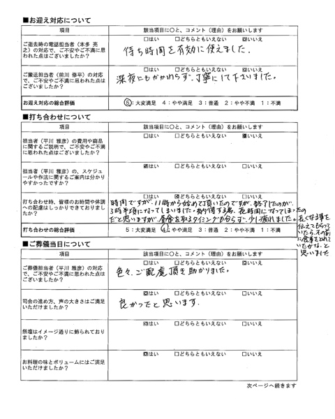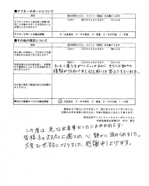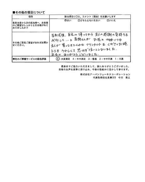 事前相談の担当者(平川 雅彦)の対応で、ご不安やご不満に思われた点はございましたか?