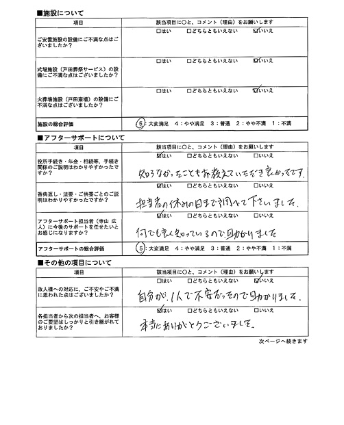 アフターサポート担当者(寺山 広人)に今後のサポートを任せたいとお感じになりますか?