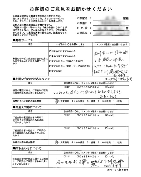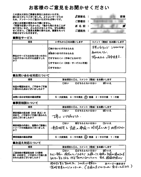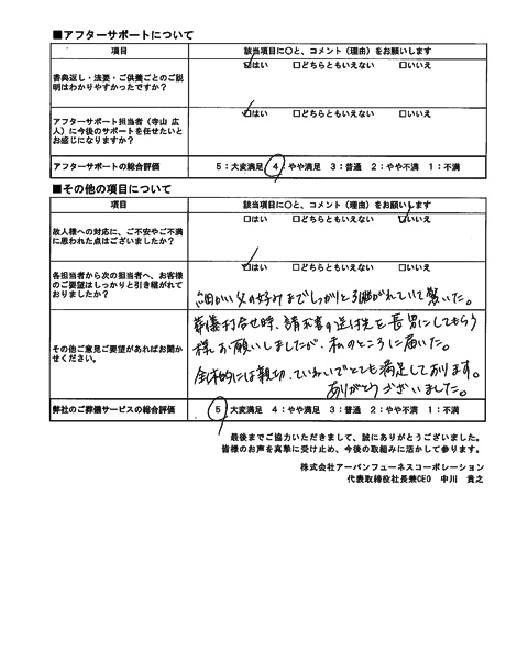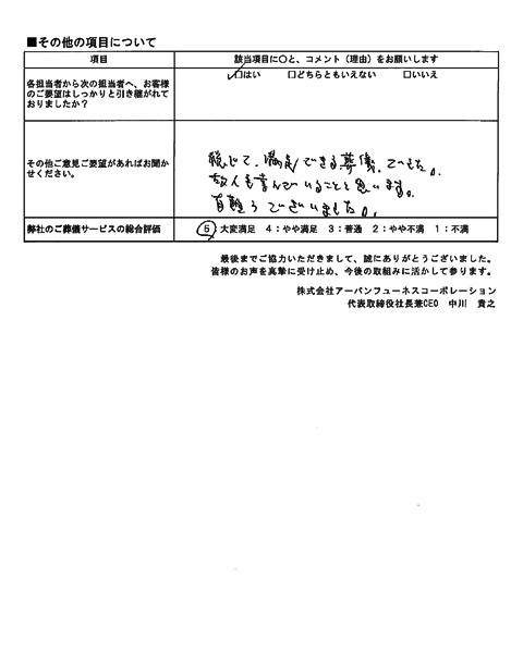 対応がとても安心できたので、他社(2社)の見積もりも予定していたがキャンセルした。