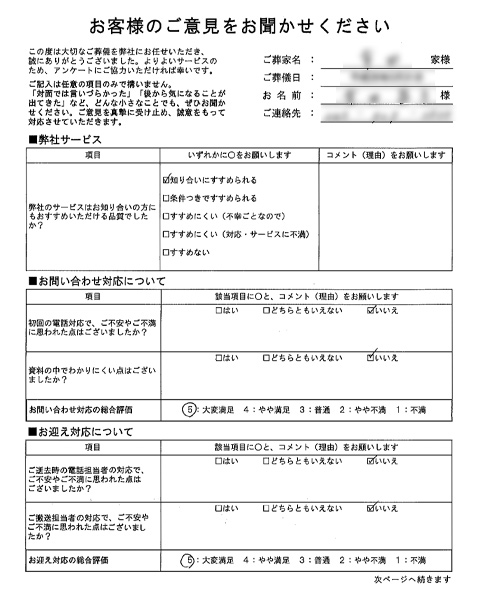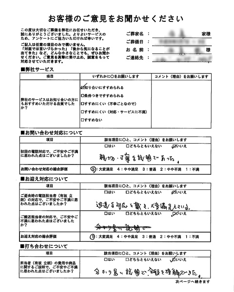 ご搬送担当者の対応で、ご不安やご不満に思われた点はございましたか?